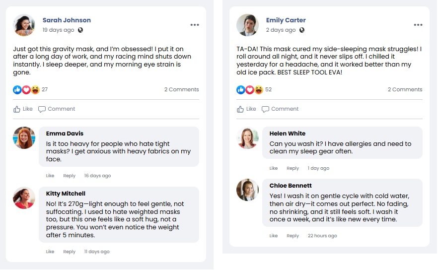 “I have sensitive skin that reacts to most fabrics, but this mask is a lifesaver! It’s incredibly soft, and I never wake up with redness around my eyes. I even wash it once a week on a gentle cycle, and it still feels like new.”